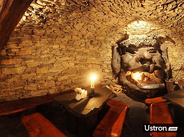 Oprócz pyska ma też diabeł... zadek, aby go jednak zobaczyć, należy zstąpić pod ziemię do najniżej położonej sali, oświetlonej pochodniami i ogniem z "czarciego" pieca. Niezwykłą atrakcją, sali III są "Żarna do mielenia grzechów ludzkich". W tej niezapomnianej scenerii, odpoczywać może, równocześnie 100 osób. W podziemnej grocie można organizować wszelkiego rodzaju przyjęcia okolicznościowe.