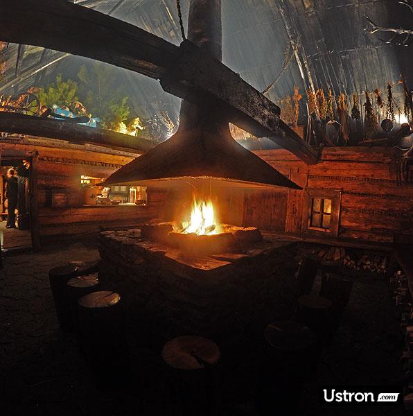 To sala ogniskowa. Wokół paleniska umieszczonego centralnie w ponad 200 letniej izbie, wygodnie mieści się około 30 osób. Palenisko służy do własnorencznej adaptacji pstrąga do spożycia. Obsługa i gospodarz radzą jak przypiekać na prawdziwym ogniu te smakowite kąski. W rogu izby wisi zerwana w Boże Narodzenie jemioła.